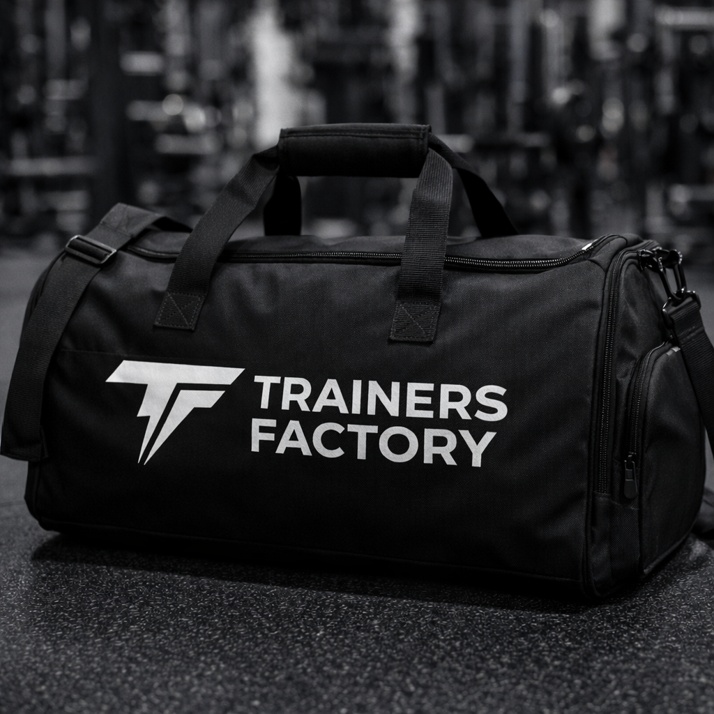 The Trainers Factory Pro-Series Duffle combines rugged ballistic durability with smart organization and bold branding, making it the ultimate gear bag for athletes and fitness professionals on the move.